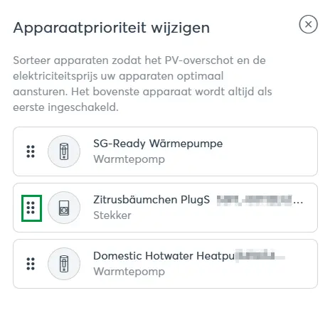Je kunt de apparaten opnieuw sorteren met de knop Prioriteit wijzigen door het betreffende apparaat vast te pakken bij de stippenvlak voor het pictogram.
